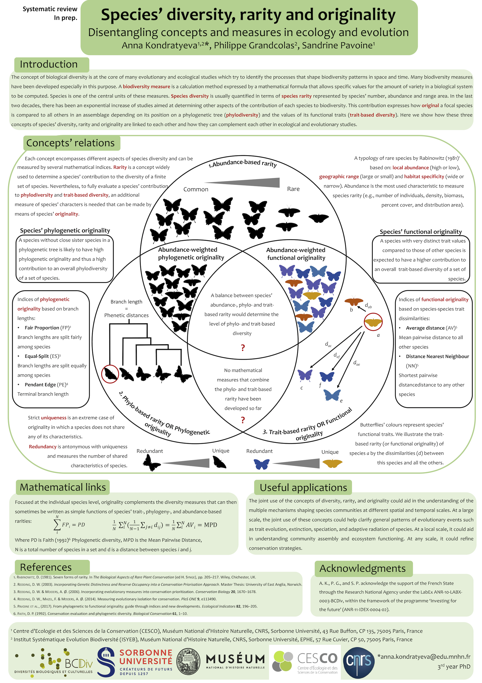 - Anna KONDRATYEVA – Concepts and measures of diversity, rarity and originality in ecology and evolution – Session THEORETICAL ECOLOGY