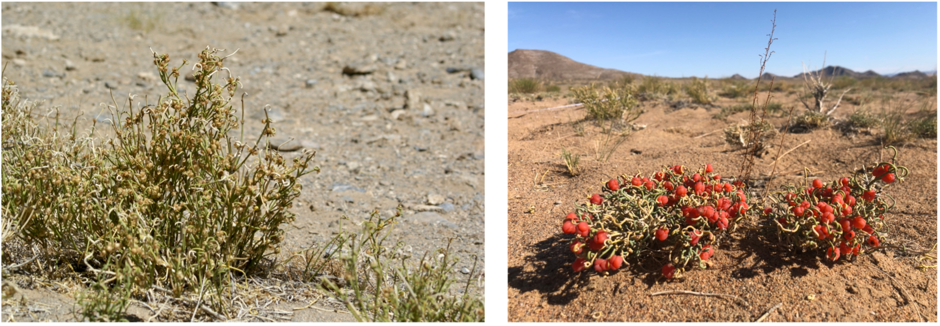 Fig. 2 : Ephedra przewalski, qui comme le cheval sauvage, porte le nom de leur découvreur Nikolai Prjevalski, naturaliste polonais. Fig. 3 : Ephedra sinica avec ces fruits rouges comestibles.