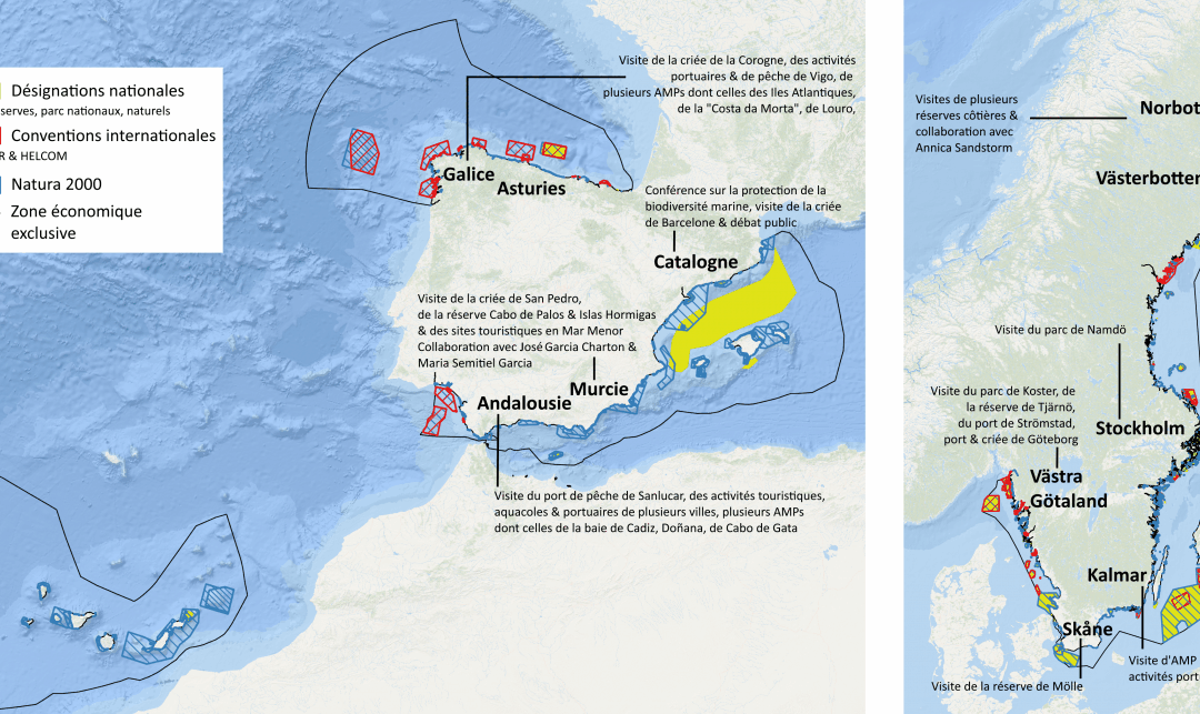 En France, son déploiement se met en route actuellement rapidement après des années d’existence floue et une note de cadrage longuement attendue. En Suède et en Espagne, l’équivalent de cette note est en travail et l’objectif se fait discret – pendant que les contestations se centrent respectivement sur l’interdiction du chalut de fond dans les AMP ou la désignation de sites et leur plan de gestion.