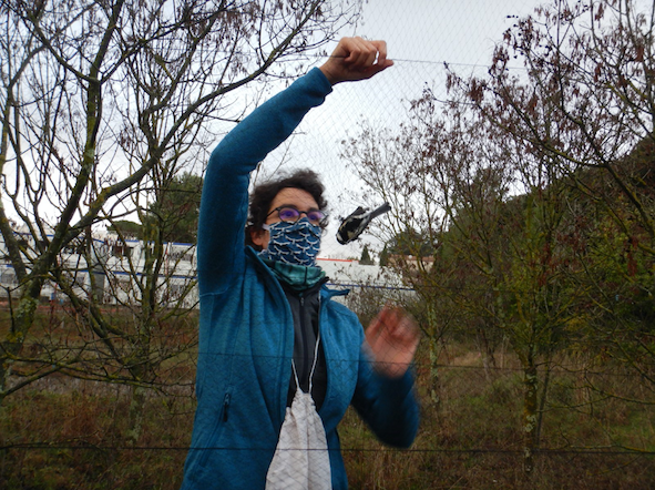 Fig.4 : Confinement 2021 : une chercheuse en écologie démaillant un oiseau. Cliché Flore De Sutter