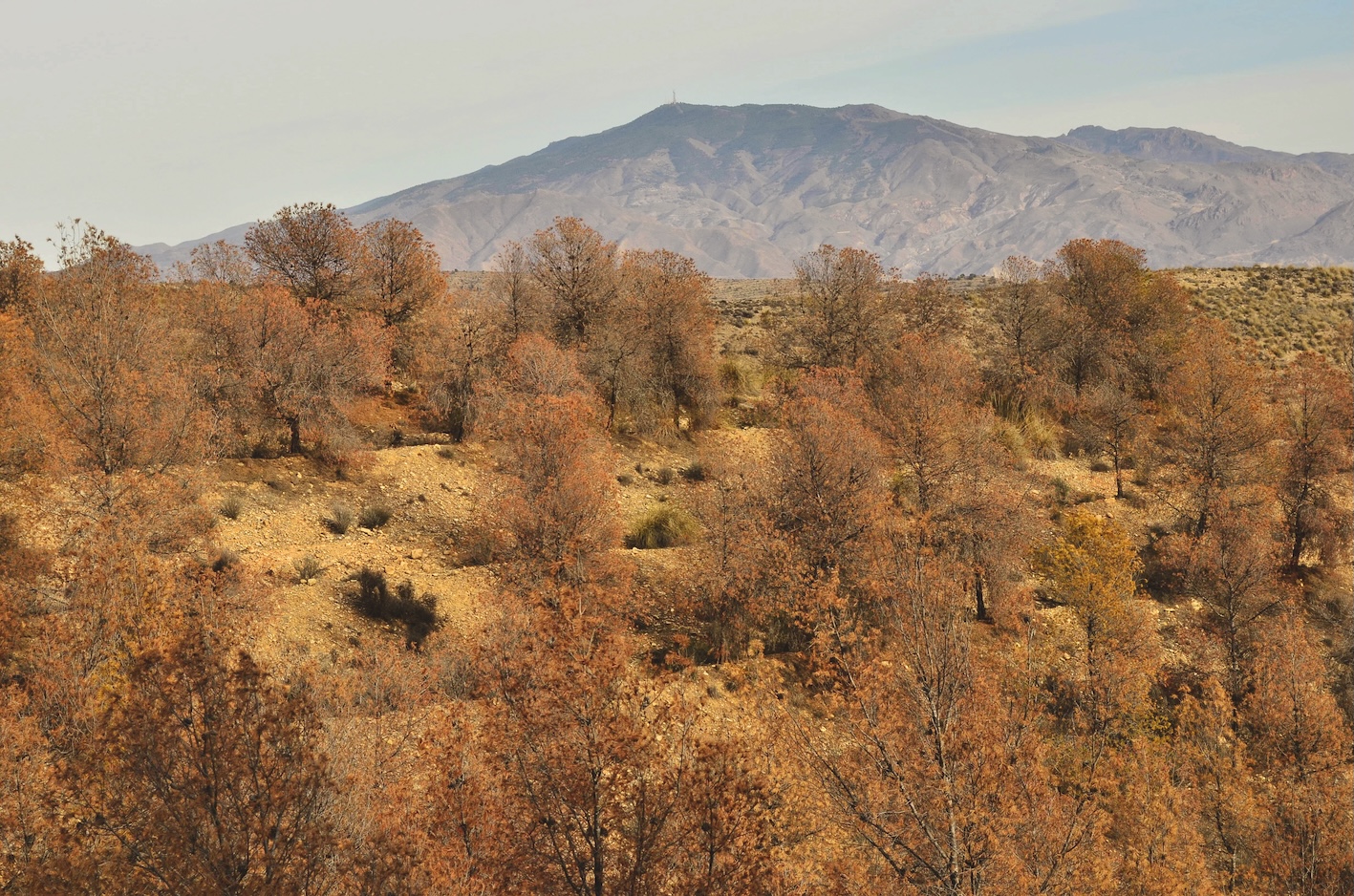 Fig. 5 : Le changement climatique modifie le fonctionnement global de l’écosystème forestier et influe sur le devenir des arbres, comme c’est le cas dans la sierra de los Filabres (Espagne).